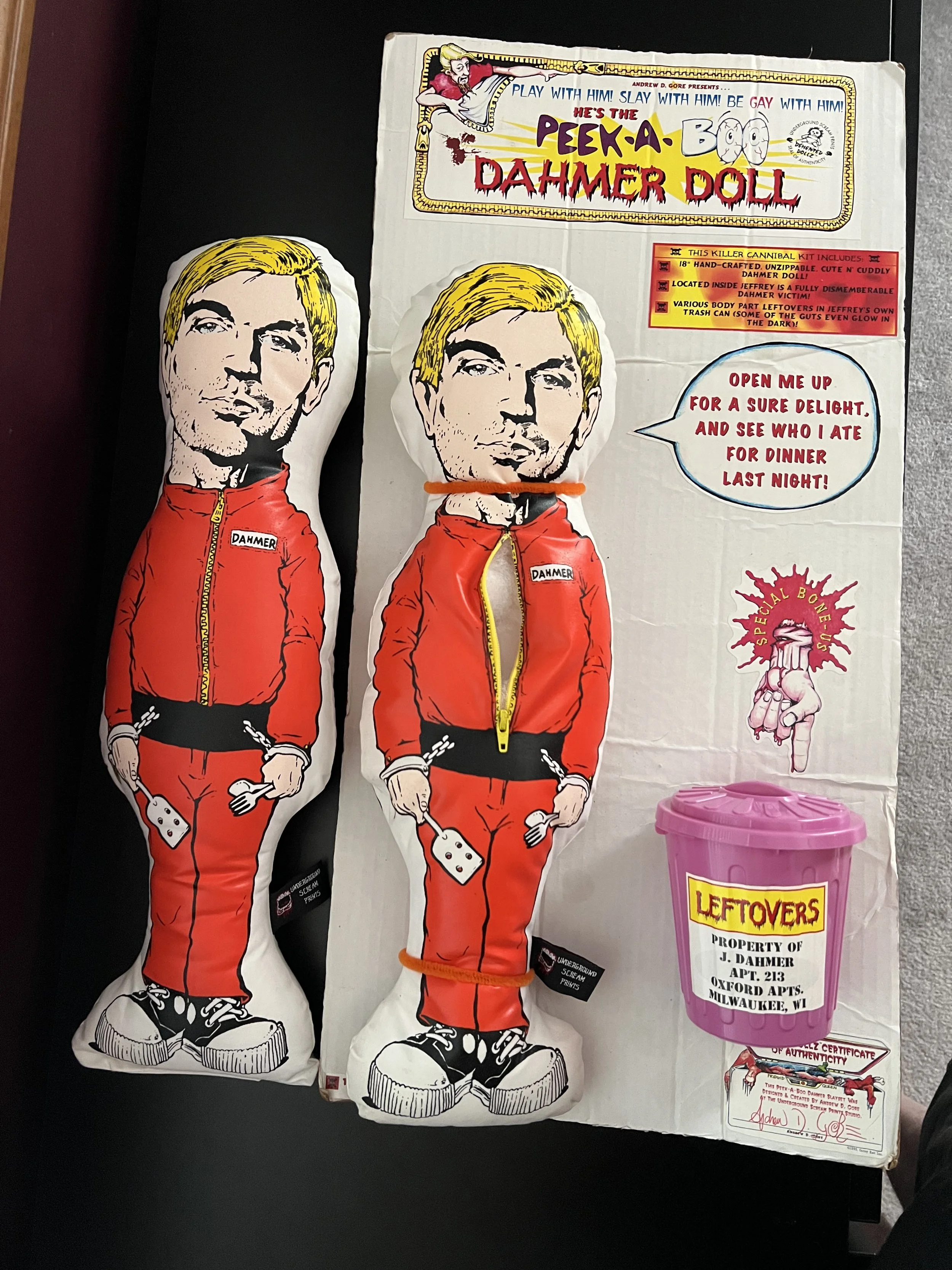 So rude… Jeffrey Dahmer playset, along with a loose single version also available without zippered top.