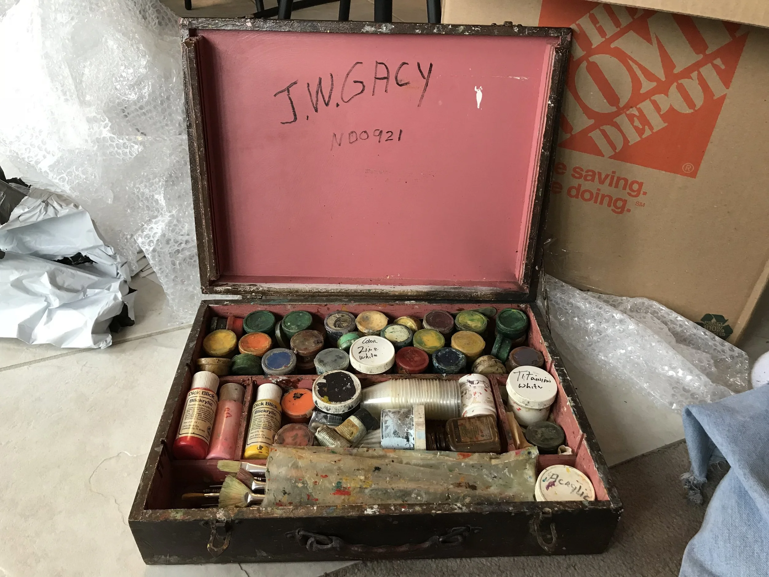 John Wayne Gacy paint kit, used to paint Pogo the Clown and all his other characters. With all documentation from delivery to Menard Prison and art books.