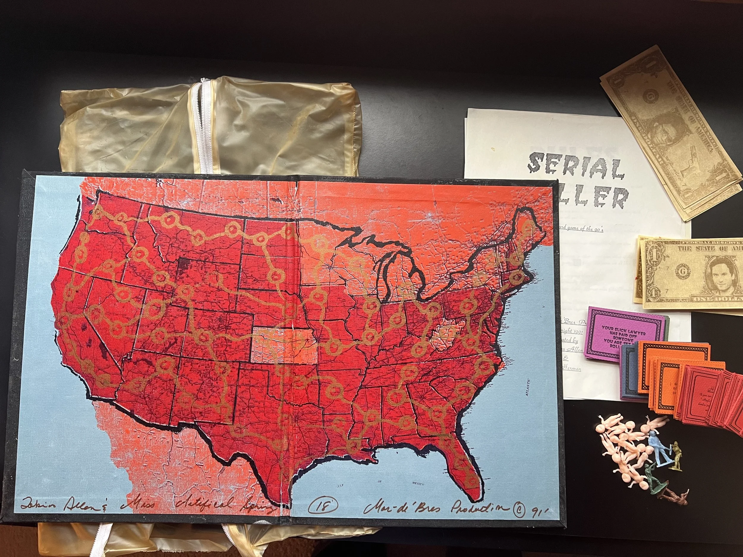 The infamous Serial Killer Board Game as seen in Rick Staton’s “Collectors” film. Complete with body bag and signed by the creator, Tobias Allen.